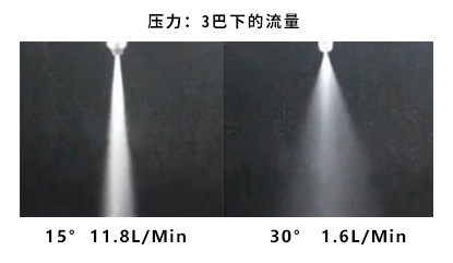 窄角實(shí)心錐形噴嘴的特點(diǎn)是能產(chǎn)生實(shí)心錐形噴霧形狀,噴射區(qū)域成圓形,窄角噴射角為30°。噴嘴產(chǎn)生分布均勻,顆粒較粗的噴霧,15°噴嘴更是如此,單位面積上的衡動(dòng)力顯著高于同樣流率下的較寬角噴嘴,窄角噴嘴都具有可拆卸的帽蓋與葉片。